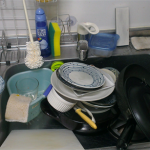 机の上はネバネバ、流し台は荒いものでいっぱい(笑