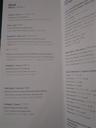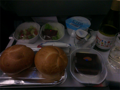 とりあえず飛行機&機内食(メニュー)&なぜかワイン(笑